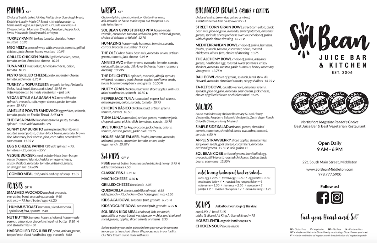 Welcome to Solbean, a vibrant café located at 221 S Main St, Middleton, MA. This health-focused eatery offers an enticing menu perfect for anyone seeking delicious, nutritious options. Whether you're looking for a quick snack or a full meal, Solbean has you covered.